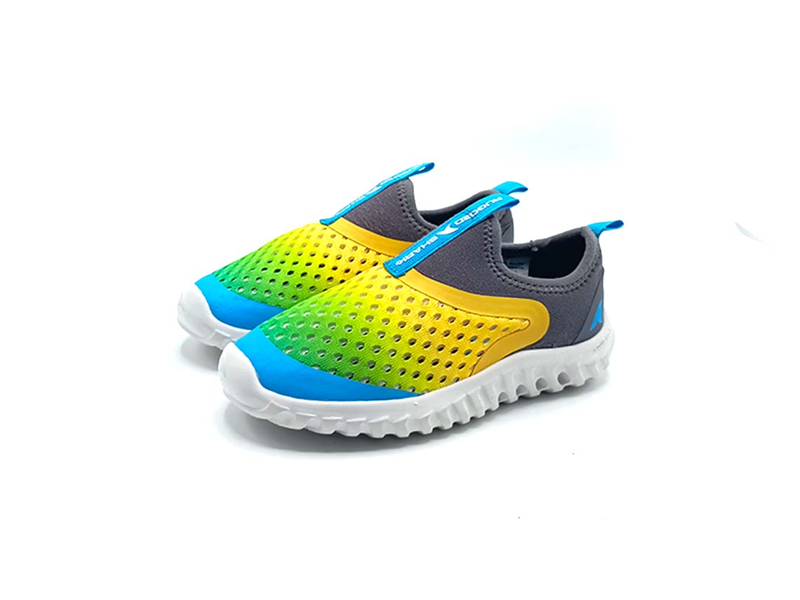 Color:Multicolor, White, Gray, and YellowUniversalMesh and RubberLow-topKidsHook & loopFlat